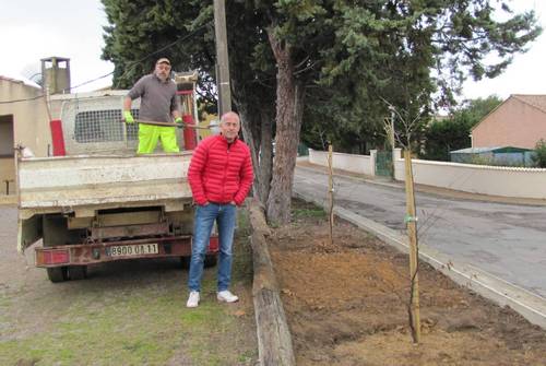 De nouvelles plantations Des charmes houblons élevés et fournis par la pépinière départementale ont été plantés sur le site du boulodrome et de l'ancienne maison des villages. Après quelques démarches, le maire Philippe Puech a pu obtenir auprès de la pépinière départementale, qui produit des plants d'arbres et arbustes pour les communes de l'Aude, dix spécimens de charmes-houblons - Ostrya Carpinifolia - une espèce dont les fleurs et fruits ressemblent à ceux du houblon. Ces arbres à croissance lente sont adaptés au sol et aux conditions climatiques du territoire local et tolère relativement bien la sécheresse et dont les racines n'impactent pas les trottoirs et routes. C'est la raison de ce choix. Le coup de pouce de la pépinière départementale Ces plants proviennent de la pépinière départementale de Nébias dans les hautes Corbières, l'un des deux sites de l'Aude produisant des plants d'arbres, le second plus spécialisé dans les plants de haies vives étant installé à Lézignan-Corbières. La mise en place en a été confiée à Fabrice Montoliu qui est allé récupérer les plants à Nébias afin de les installer au Boulodrome et à l'ancienne maison des village. Les trous ont été effectués mécaniquement. L'agent technique affecté aux espaces verts a fait le reste. Il a mis en terre et tutoré les plants de plus d'un mètre de haut après avoir effectué un apport de terreau et travaillé le sol pour l'ameublir. L'arrosage effectué, il a pu récupérer du broyat auprès de la Brigade verte du SMMAR (Syndicat Mixte des Milieux Aquatiques et des Rivières) nouvellement installée au village pour mettre au pied de chaque arbre afin de maintenir l'humidité du sol et éviter la pousse des mauvaises herbes. Le jardinier veille désormais avec une attention toute particulière sur chaque plant pour que petit arbre devienne grand. Dans quelques temps, des plants de haies vives viendront compléter l'embellissement des sites.