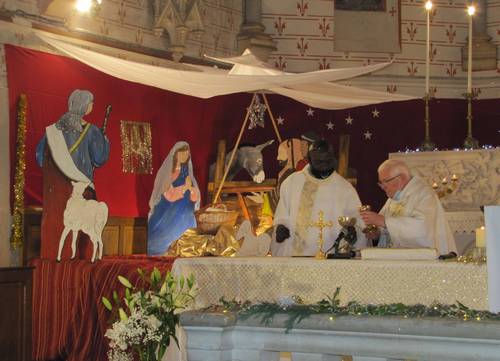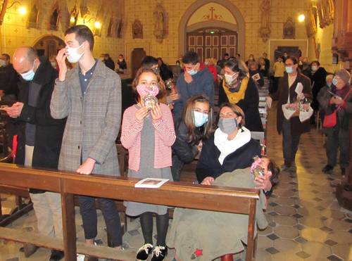 Célébration de Noël très particulière À l'image de l'année 2020 et de son chapelet de contraintes liées à la crise sanitaire, la « messe de Noël » s'est distinguée par une multiplication des offices afin que les fidèles des villages de la paroisse Sainte-Thérèse en Corbières puissent participer à la célébration de la Nativité. Cette année, pas de crèche vivante, autre contrainte de la crise, mais deux crèches : une traditionnelle installée par Monique et Nicole dans la chapelle Ste-Germaine et une en toile de fond dans le choeur réalisée par Joëlle de Durban. Concélébrée par le père Louis et le père François, la messe de Noël - avancée à 16 heures pour en permettre une seconde à Tuchan dans la foulée sans oublier celles du jour de Noël à Durban et Saint-Laurent - accueillait une assistance conforme aux règles imposées, dans le recueillement. L'espoir des fidèles était accompagné de cantiques traditionnels avec la participation de Christian au piano, Xavier à la guitare, le père François et son djembé ainsi que Michèle, chef de choeur et la chorale des villages. À l'issue de l'office, le père Louis souhaitait « un joyeux Noël dans la paix, l'amour et la joie de la famille » . Chaque enfant présent a reçu un sachet de chocolats offerts par la paroisse.