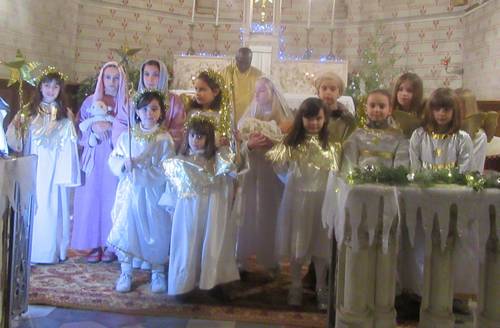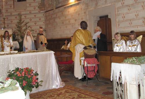 de Noël Comme chaque année, l’église Sainte-Eulalie accueillait la veillée de Noël de la paroisse Sainte-Thérèse en Corbières. L’église était tout juste assez grande pour contenir les nombreux fidèles venus assister à la messe et partager ce moment de recueillement et de paix. Accompagnée de chants traditionnels et parfois des applaudissements de l’assistance, la messe était célébrée dans une ambiance chaleureuse par le père François qui accompagnait les cantiques au djembé. Dans son homélie, il a souhaité un joyeux Noël et une belle fête de la nativité à tous – ici et dans le monde. La crèche vivante, à laquelle participait une quinzaine d’enfants du village et des communes voisines, avait été préparée et répétée avec les catéchistes Élisabeth et Nicole. Joseph, Marie, les rois mages, les bergers, les étoiles et les anges ont plongé les fidèles dans la magie de la nuit de Noël au cours d’une célébration aussi joyeuse que recueillie.