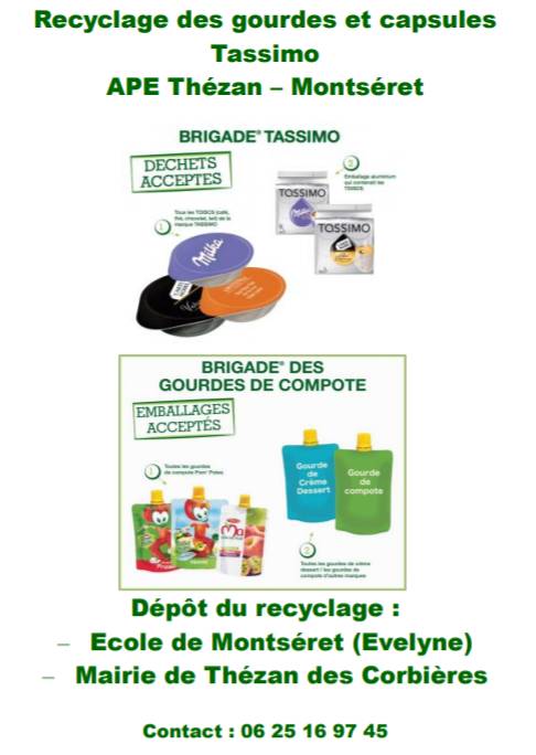 Recyclage des capsules de café TASSIMO ainsi que les gourdes de compotes.