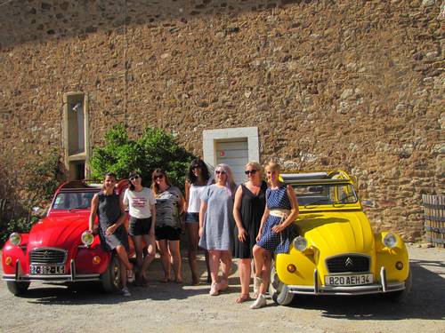 est ainsi qu'elles ont emmené dans leurs deux chevaux rutilantes cinq bloggueuses parisiennes pour leur faire découvrir les loisirs que proposent notre beau département à travers ses vignes, les ruines de châteaux mais aussi ses vins et produits du terroir avec quelques haltes concoctées d'avance entre autres au château de Boutenac, à la miellerie des Clauses, au château St Estève accompagnées de dégustations...