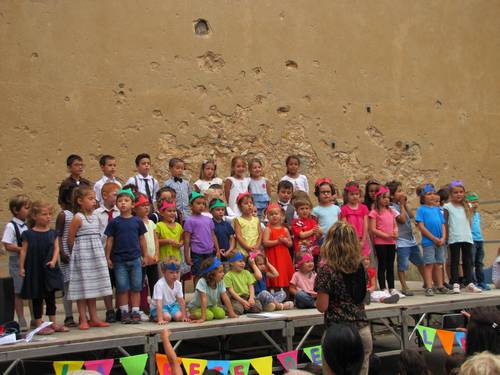 y avait foule sur la place de la mairie jeudi... Et pour cause, les élèves des quatre classes du RPI Thézan/Montséret étaient sur scène pour célébrer la fin de l'année scolaire. Tous en choeur, ils ont interprété diverses chansons et même une en anglais, clin d'oeil à l'apprentissage de cette langue. Les plus petits de classe maternelle ont chanté sur le thème des animaux! L'après-midi s'est poursuivi autour de la danse, thème qui a inspiré grands comme petits dans cet après-midi rythmé... En fin de spectacle, les enseignants et Atsem ont reçu cadeaux et fleurs offerts par les parents d'élèves, pour les remercier de cette belle année scolaire et laisser la place aux grandes vacances!