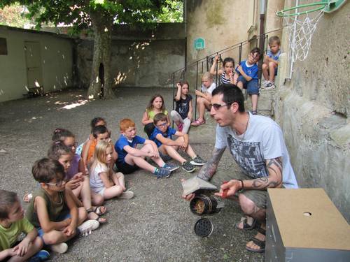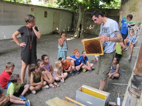 Il n'était évidemment pas question de transporter une ruche et son essaim dans la cour de l'école mais Frédéric Dapot avait apporté un enfumoir, une tenue d'apiculteur, les cadres et racloir, du miel liquide et crémeux que les élèves ont dégusté avec plaisir. De quoi leur montrer la réalité des choses...Et il faut l'avouer, les abeilles ont captivé l'attention des enfants qui ont posé de multiples questions sur ce petit monde des insectes si bien organisé.