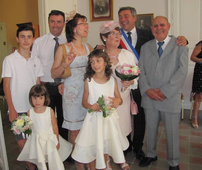 Le maire Patrick Dapot a ainsi accueilli les futurs mariés avec émotion et pour cause, Chantal Colomes est présidente du club des Sans Souci, secrétaire des Amis du Patrimoine et membre de la MJC. Germinal Ortega, lui, préside le Pétanque Club depuis des lustres et est trésorier du Ball-trap. « L'atmosphère agréable qui règne dans le quartier haut de notre village et au sein du milieu associatif thézannais a favorisé une rencontre et aujourd'hui votre union », a ajouté le maire. Car après 17 ans de vie commune, Chantal et Germinal se sont dit oui le plus traditionnellement du monde. Le maire et leurs proches qui partageaient ce moment privilégié ont applaudi et félicité les nouveaux époux.
