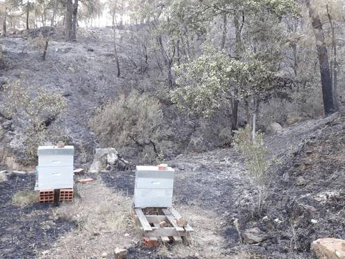 Petit rayon de soleil qui fait suite à la triste journée du 15 juillet où le massif du Pinada était détruit pas les flammes. Frédéric Dapot, jeune apiculteur par passion qui avait installé ses ruchettes sur le versant thézanais de la pinède en mars 2018, a eu la bonne surprise de retrouver ses ruches intactes. Non seulement, elles n’ont pas brûlé mais même leurs supports n’ont pas été ne serait-ce que noircis par le feu. Mieux encore, les essaims sont indemnes et dès mardi se remettaient au travail comme si de rien n’était. Cet endroit certes abrité a quand même subi de plein fouet l’incendie. « C’est un vrai miracle, j’ai beau chercher, je ne trouve pas la réponse », commentait Frédéric Dapot mercredi. Les ruches vont être transportées vers un autre lieu et peut être lorsqu’il les ouvrira y trouvera-t-il les plaques, le miel ou la cire fondus. Mais l’essentiel a été préservé. « Un grand merci aux pompiers qui ont sauvé mes ruches, au maire et à tous ceux qui se sont inquiétés de mes abeilles », a conclu celui qui se qualifiait d’happyculteur il y a un peu plus d’un an… une formule anglicisée qui n’a jamais aussi bien porté son nom !  Juillet 2019 |