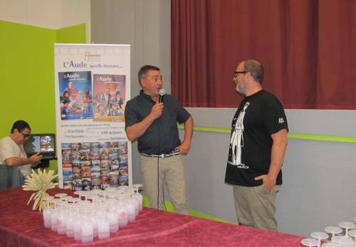 L'Aude quelle belle histoire Le maire Patrick Dapot avait invité le réalisateur Yanick Séguier à venir présenter son dernier film, « L’Aude, quelle histoire… » au foyer ce samedi. Près de 180 personnes ont pu apprécier cette magnifique fresque historique qui raconte le département, de l’Antiquité aux années « 80 » avec précision, finesse, émotion et humour, documents originaux à l’appui. Une belle leçon d’histoire pour les Audois d’origine comme pour les Audois d’adoption. 1 000 personnes pour boucler la boucle! C’est un travail colossal qu’ont entrepris Yannick Séguier et son équipe. Le film a nécessité un an de tournage et quatre mois d’écriture et de recherches historiques auprès des archives départementales, d’historiens, de journalistes… Pour coller au plus près de la réalité. Les scènes ont été interprétées par 148 acteurs, 790 figurants de 1 mois à 94 ans, avec l’aimable participation de l’acteur Michel Cordes, le célèbre propriétaire du Mistral de la série « Plus belle la vie ». Ce sont aussi le vécu et le ressenti des habitants pendant les événements marquants du département qui ont été tournés sur 14 territoires et 62 sites ; autant de paysages et monuments qui font la richesse de l’Aude. Au total 1 000 personnes ont participé à la réalisation de ce film diffusé en deux parties, avec pause « collation » offerte par la mairie à mi-parcours. Une vraie belle soirée !