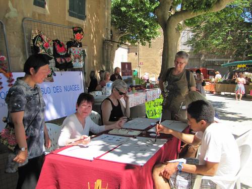 faisait un temps estival, chaud, trop chaud même... ce qui n'a pas empêché les visiteurs de venir nombreux dès le matin rencontrer producteurs de fleurs et plantes, de spécialités locales, de vins du terroirs, artisans, artistes passionnés et autres animations tous public. Le maire Patrick Dapot, Daniel et Jean-Yves, élus locaux, des bénévoles du village .. ont contribué à la réussite de cette belle journée à la campagne qui ne manquait ni de saveurs, ni d'odeurs, ni de couleurs.