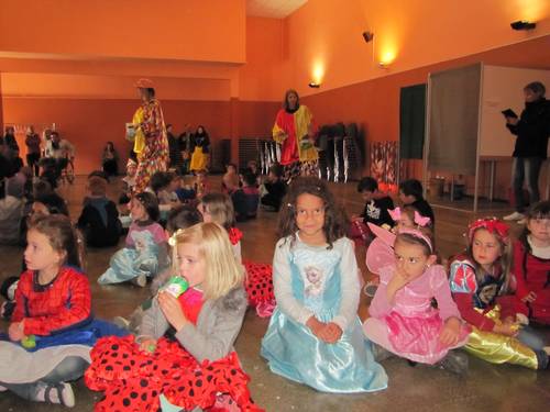 La météo n'était pas vraiment de bonne compagnie en ce jeudi ensoleillé certes, mais très venté. Juste le jour où l'école du village faisait son carnaval! A tel point que le défilé s'est réduit au chemin qui conduit vers le foyer où les enfants ont pu s'en donner à coeur joie et montrer leurs beaux costumes! Du rythme, des danses apprises en classe et quelques percussions ont animé l'instant présent. Un goûter offert par l'école a conclu ce bel après-midi où princesses et héros de tout poil n'avaient que le souci de profiter pleinement de ce moment chaleureux et convivial auquel de nombreux parents ont assisté et prêté leur concours.