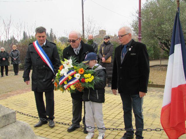 Le 19 mars célébré en petit comité Une trentaine d'habitants était présente autour du conseil municipal, de la section locale des anciens combattants et du Souvenir français pour la commémoration du 19 mars 1962. Le cortège s'est rendu au square qui rappelle la date du cessez le feu pour y observer une minute de silence. De retour au monument aux morts, la manifestation s'est déroulée très traditionnellement. Cette année un seul enfant était présent, Lukas qui a donc participé à la cérémonie de très près en assurant le port puis le dépôt de la gerbe au pied du monument érigé en 1921. La cérémonie s'est poursuivie avec sonnerie, Marseillaise et lecture du message de la FNACA par le président Guy Flamand. Message qui rappelait le choix de cette date pour honorer les 30 000 victimes de ce conflit et la nécessité de pérenniser le devoir de mémoire.«Valoriser cette cérémonie, c'est vaincre l'indifférence dont nos enfants de la République sont l'objet. Nous le devons à leur famille... Préserver, transmettre, faire partager leurs valeurs de citoyenneté, de solidarité.. ».