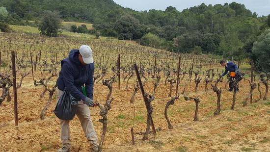 Avec le printemps, les activités liées à la vigne et à la protection de l'environnement sont au programme au domaine Saint-Estève. Pendant une dizaine de jours, un troupeau de 120 brebis, quelques chèvres pour le lait, des poules pour les oeufs, accompagnés d'un couple de bergers qui se qualifie d'idéaliste, se sont installés pour une estive. Ils sont depuis repartis vers le Tarn pour la mise bas des brebis. Entre-temps, plus d'une cinquantaine de ruches en provenance de l'Hérault se sont installées autour du domaine où les abeilles récupèrent les pollens de la garrigue, de romarin et des fleurs. Quelques jours plus tard, une équipe de huit saisonniers a travaillé dans les vignes pour poser à des espaces bien calculés des diffuseurs de confusion sexuelle pour éviter le traitement du ver de la grappe... La bagatelle de 56 500 de ces diffuseurs ont été installés soit 500 à l'hectare, posés un par un après avoir ôté celui de l'année précédente. Se mettre au vert a un coût: celui de l'amour de la nature et du travail bien fait.