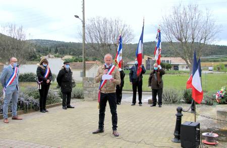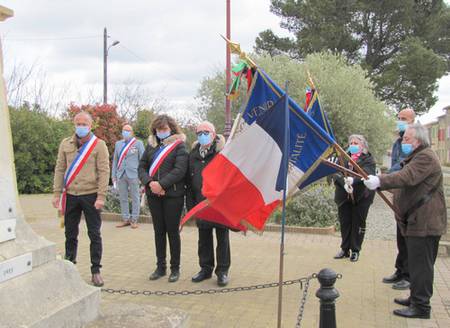 | Commémoration en toute intimité Les accords d’Évian signés le 19 mars 1962 proclamaient le cessez-le-feu en Algérie. Cinquante neuf ans après, c'est en comité très restreint en raison des consignes sanitaires, que le maire Philippe Puech, Hugues Dautherives et Joëlle Soler, adjoints, Guy Flamand, président des Anciens combattants et les porte-drapeaux ont rendu hommage à la mémoire des victimes civiles et militaires de ce conflit et de toutes les guerres. Après une minute de silence respectée au Square du 19 mars 1962, le président donnait lecture du message de la FNACA concluant que "Ensemble, veillons à tisser et préserver ce lien intergénérationnel si précieux afin de se faire entendre pour un avenir de Paix». Le dépôt de gerbe effectué au pied du Monument aux morts, au travers du message de Geneviève Darrieussecq, ministre déléguée aux anciens combattants, le maire rappelait que «le 19 mars, un tournant décisif fut pris. Pour des milliers de familles il y eut un avant et un après».
