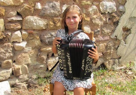 Myha: son coup de coeur pour l'accordéon! Il y a deux ans, la jeune Thézannaise a eu le coup de coeur pour le piano à bretelles... Myha a 8 ans. Il y a deux ans, elle a carrément été séduite par l'accordéon pour son côté festif. C'est ce côté gai et enjoué de l'instrument qu'elle a d'abord retenu lors d'une déambulation dans une fête! Et son envie s'est confirmée avec le chanteur Claudio Capeo qui a commencé comme elle l'accordéon à l'âge de six ans. Bien entendu, Myha a rencontré le chanteur et son accordéon chromatique il y quelques temps, elle a pu discuter avec lui, se faire prendre en photo avec son idole... Le rêve quoi! Mais avant d'en arriver au talent et à l'aisance de son modèle, Il lui faut apprendre, travailler, répéter encore et encore. L'accordéon n'est pas un instrument facile! Myha est fortement encouragée par sa famille et suit les cours du centre musical Christian Bouquet à Narbonne depuis deux ans à raison d'une heure trente chaque mercredi - le seul bémol à sa nouvelle partition bien réglée c'est l'heure matinale du cours! Et en principe, chaque soir, elle travaille une vingtaine de minutes les morceaux appris en cours pour être au point la semaine suivante... Cette année, elle a participé aux rencontres des diverses écoles du centre musical à Nissan et ce vendredi, elle sera sur scène - et oui - elle y rejoindra les Rat' s Cordés pour un petit intermède musical accompagné ... à l'accordéon!