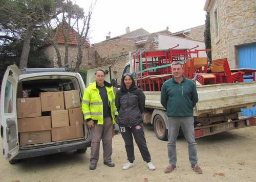 Depuis deux semaines, Élodée et Émilie, deux mamans du village ont collecté du matériel scolaire. Vendredi matin, le maire Patrick Dapot, Daniel Bouniol, adjoint aux travaux, un employé communal et Élodie Ferrand, l’une des mamans qui avait lancé la collecte étaient sur la place du Languedoc pour charger les cartons et matériel dans le camion et le véhicule de la commune ainsi qu’un véhicule personnel.