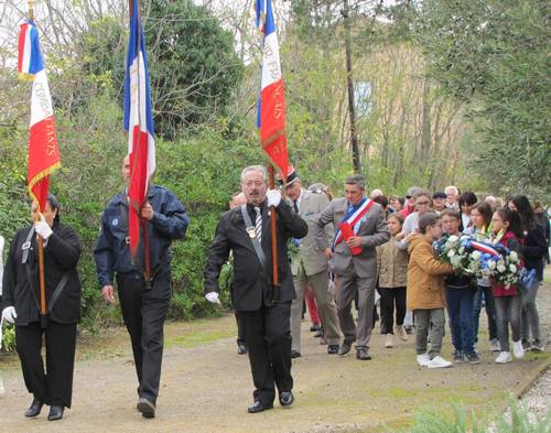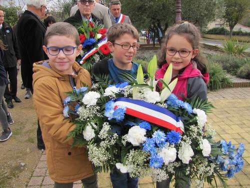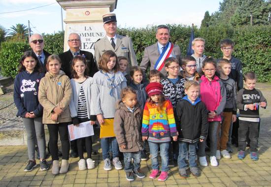 À 11 heures précises, les cloches ont sonné à toute volée comme partout en France. Quelques minutes plus tard, le cortège mené par le maire Patrick Dapot, le lieutenant-colonel Xavier Capman, représentant le délégué militaire départemental de Carcassonne, les présidents et porte-drapeaux des associations patriotiques, dirigeait les Thézanais toutes générations confondues, vers le monument aux Morts. Les enfants des écoles et leurs enseignantes étaient en première place pour cet hommage aux Poilus, à ceux du village en particulier. Après le traditionnel dépôt de gerbe, les enfants ont déposé la leur, toute de fleurs bleues et blanches. Les plus grands se sont succédé pour lire des extraits de lettres de Poilus et le maire a fait l’appel aux morts, les enfants répondant en chœur : « Mort pour la France ». « C’était une belle cérémonie, une commémoration émouvante » commentera - en aparté - le lieutenant-colonel Capman après cette cérémonie qui laissera sans doute des traces dans les mémoires des enfants de tous âges mais également de l’assistance qui n’avait jamais été aussi nombreuse.