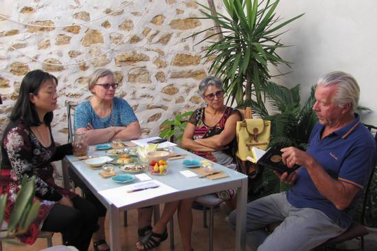 Invité par l'association au Sud des nuages, Jean-Marie Crozals, poète et passeur de poèmes est venu partager sa passion pour les vers et la prose. Une rencontre intime dans le cadre privilégié de la terrasse ombragée du siège social de l'association. D'entrée, le ton était donné. "Un poème s'écoute et se lit avec tous les sens, avec son corps, avec son âme" a expliqué Jean-Marie Crozals. Et sans aucun doute les trois personnes présentes ont-elles pu apprécier le son et la musique des mots du poète chinois dont Claude Roy a réuni les poèmes traduits par un de ses amis au travers d'un livre intitulé "L'ami qui venait de l'an mil". A la douceur des mots et à la discussion à livre ouvert qui s'ensuivait, s'ajoutaient les douceurs du palais préparées par Lilan, animatrice de l'association avec cérémonie du thé et dégustation de thé au Camélia Sinensis et diverses gourmandises traditionnelles tels que gâteaux de lune ou chocolat artisanal fourré au thé vert bio, un véritable délice... Cette première rencontre un peu timide pourrait se renouveler pour le plaisir d'écouter encore la musique des mots...