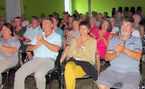 Le Carambole club rend hommage au fou chantant Près de 80 personnes étaient présentes ce samedi au foyer municipal pour assister au concert en hommage à Charles Trénet. De « La mer » à « Y’a d’la joie », en passant par ses plus grands succès, Bernard Castan a ravi le public par ses interprétations personnalisées du répertoire du fou chantant. Magistralement accompagné au piano par Pierre Troupel, c’est un véritable festival musical qui s’est déroulé entre poésie et bonne humeur accompagné des applaudissements du public. En fin de concert, Léa est venue donner a cappella un aperçu de son talent. La soirée s’est terminée autour d’un apéritif très convivial préparé par les membres du Carambole club et leurs conjoints. Une belle soirée comme la souhaitait le président José Afonso, soirée dont les bénéfices serviront à améliorer les équipements mis à disposition. Le club, créé en mars dernier, regroupe une dizaine d’adhérents dont une partie maîtrise le billard. Les autres peuvent être conseillés et formés gratuitement par le pianiste de la soirée qui excelle avec le même brio dans cette discipline et en est le moniteur agréé par le FFB. Le Carambole club thézanais situé rue de la Croix rousse est ouvert les vendredi à partir de 20 h 30, samedi à partir de 15 h 30 et les autres jours, sauf le dimanche sur simple demande au 06 03 97 20 16