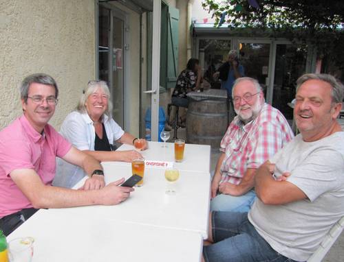 "Onskoné?" tient table ouverte Deux Thézanaises d’adoption Elfriede Wienisch et Monica Allemand ont lancé l’idée de se retrouver autour d’une «table ouverte» comme cela se passe dans leurs pays d’origine. Elles se sont donc adressées au P’tit motard, le seul café du village pour y organiser ces rencontres qui ont lieu chaque vendredi à partir de 18h autour d’un thé, d’un café ou d’un verre pour discuter et apprendre à se connaître. Chacun y dévoile des anecdotes de sa vie passée, ses passions, ses loisirs pour répondre à la question fatidique et condensée «Onskoné?» ... en français, en anglais ou en allemand! Sans manière et en toute convivialité, Thézanais d’origine et Thézanais d’adoption font connaissance et s’apprécient. Une bonne idée qui permettra peut-être à ces échanges de durer dans le temps. Pour l’instant Elfi, originaire d’Allemagne et Monica qui vient d’Angleterre se sont donné jusqu’à la fin de l’année pour créer de vrais liens d’amitié entre les volontaires qui ont répondu à cette initiative!