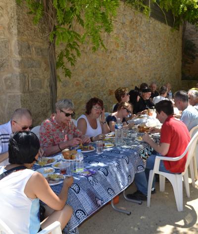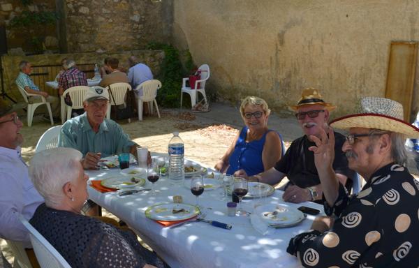 Emmenés par David, la balade dans les Corbières démarrait dans la bonne humeur et avec le plaisir non dissimulé de présenter carrosseries étincelantes et chromes rutilants. Après une petite halte très appréciée au Château St Estève, les participants étaient de retour. Plusieurs passionnés sont repartis vers les fêtes de famille mais plus de la moitié a fait le choix de partager avec les Thézanais le repas préparé par l'association et servi sous la tonnelle couverte de glycine, un lieu qui invite à la détente.