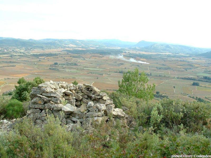 Au pied d' une ruine, la plaine viticole Thézan - les Ollieux - Montséret