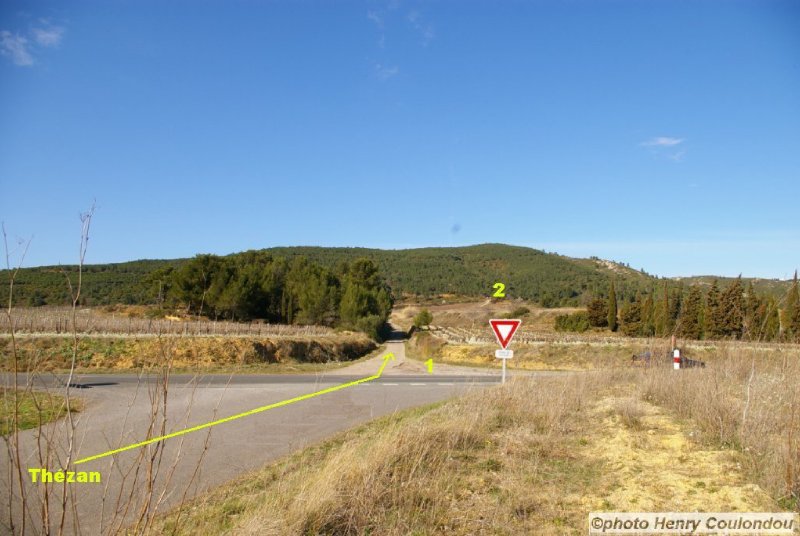 Continuer tout droit au croisement de la route de Narbonne. Pour les moins courageux il est possible de garer la voiture aux points 1 ou 2