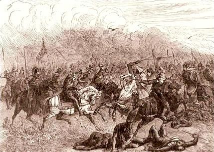 Pour délivrer Narbonne la musulmane assiègée par Charles Martel,, le Wali d' Espagne rassemble une imposante armée qui fait voile vers l' actuel étang de Bages, tandis que la légendaire cavalerie arabe franchit les Pyrénées en direction de Portel des Corbières. Le choc entre les deux armées aura lieu dans les Corbières, au sud de Narbonne, le long du fleuve côtier La Berre. |