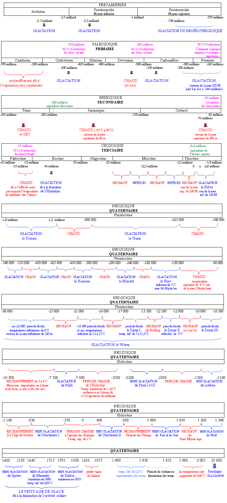 glaciaires tous les 100.000 ans entrecoupées cycliquement