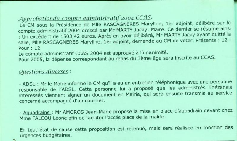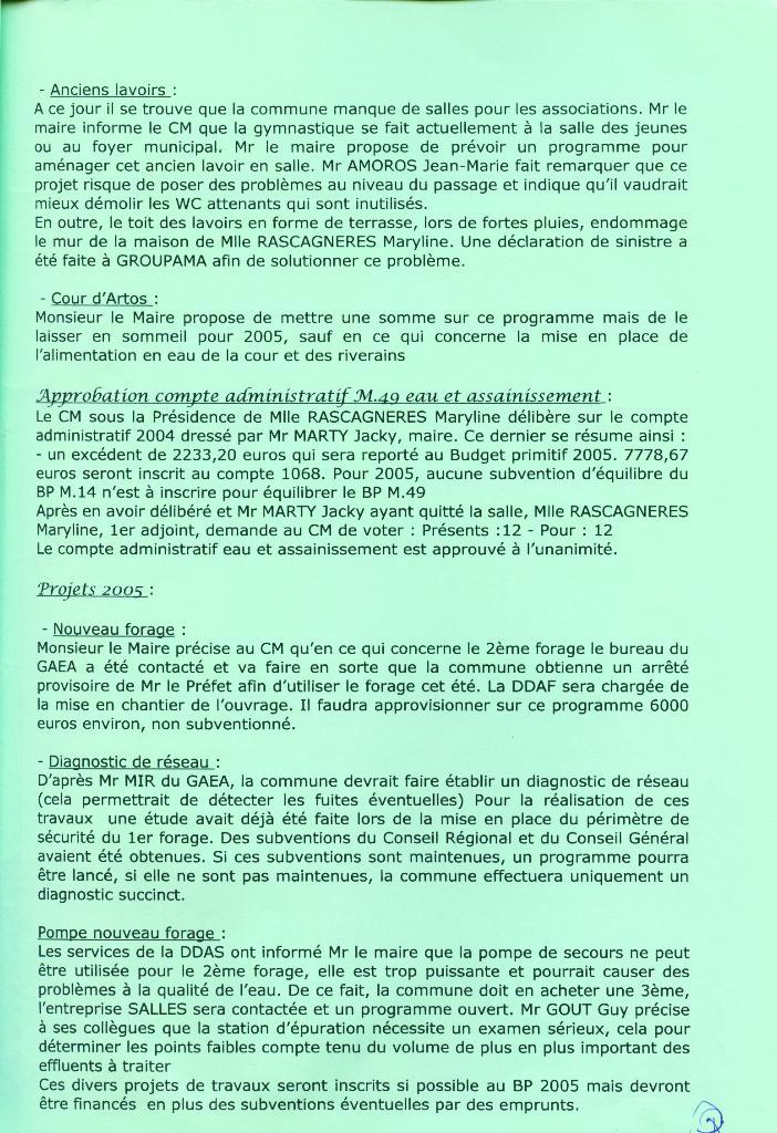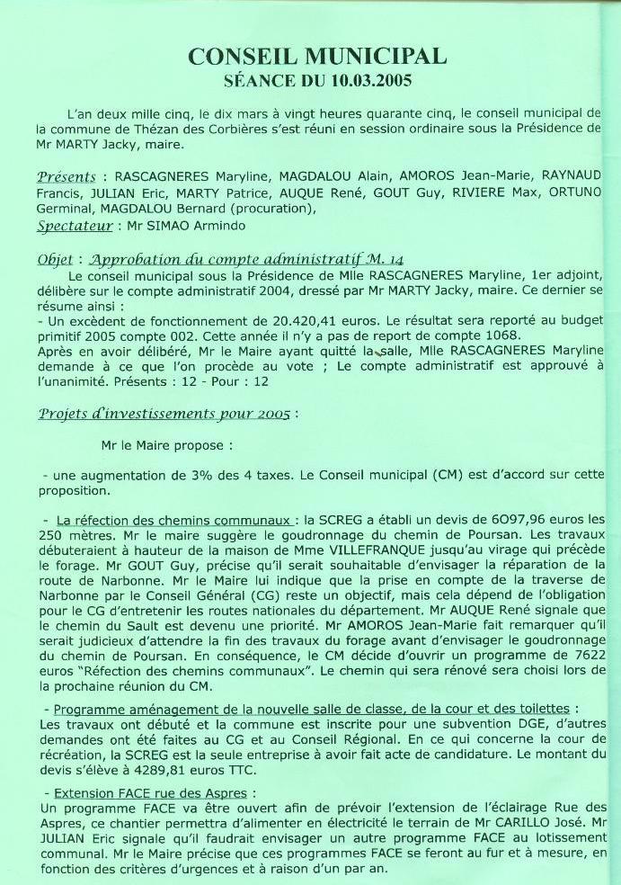 Compte-rendu des Séances du Conseil MunicipalSéance du 10 Mars 2005