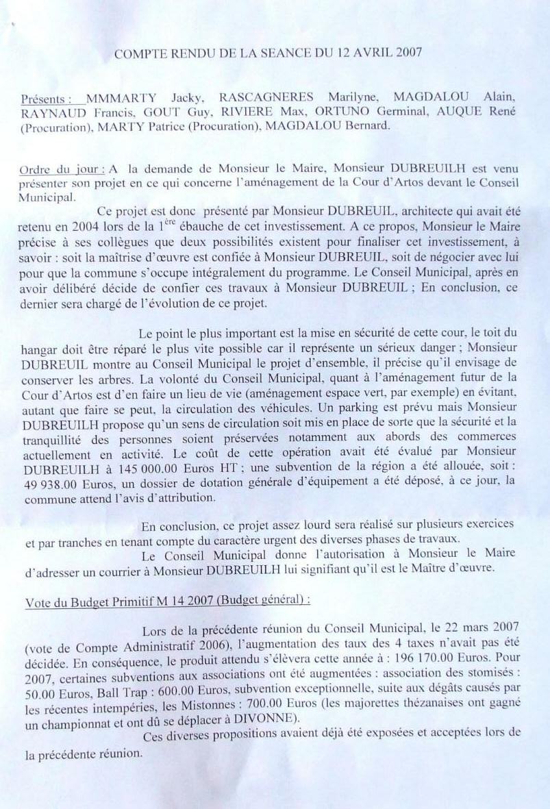 Compte-rendu des Séances du Conseil MunicipalSéance du 12 Avril 2007
