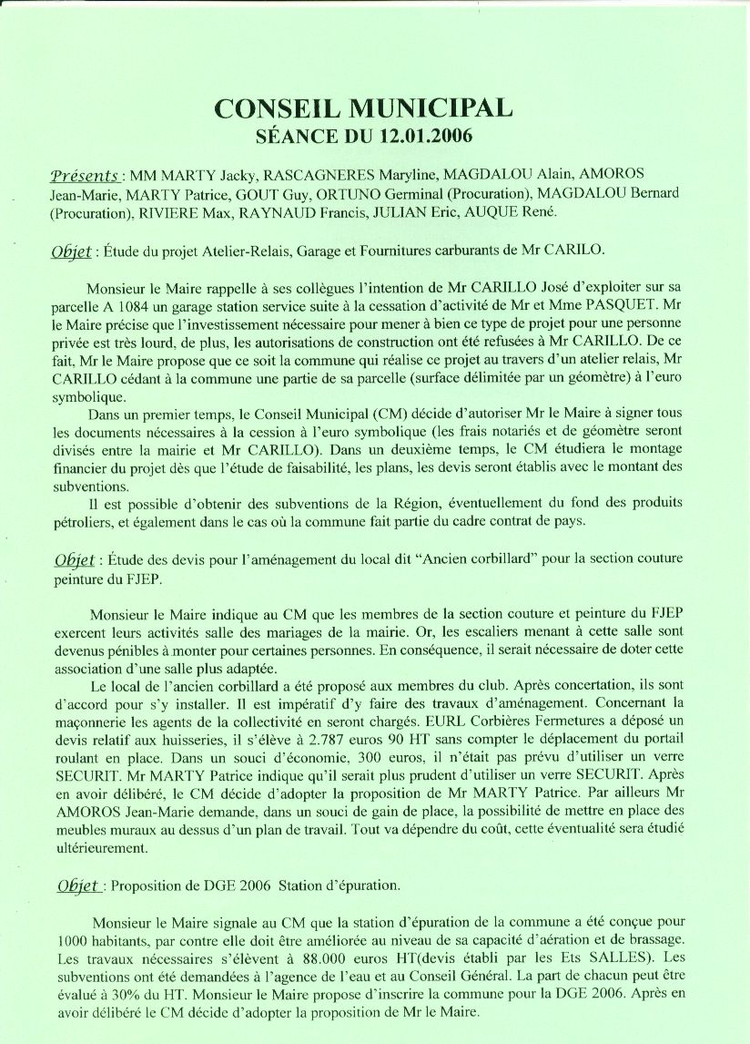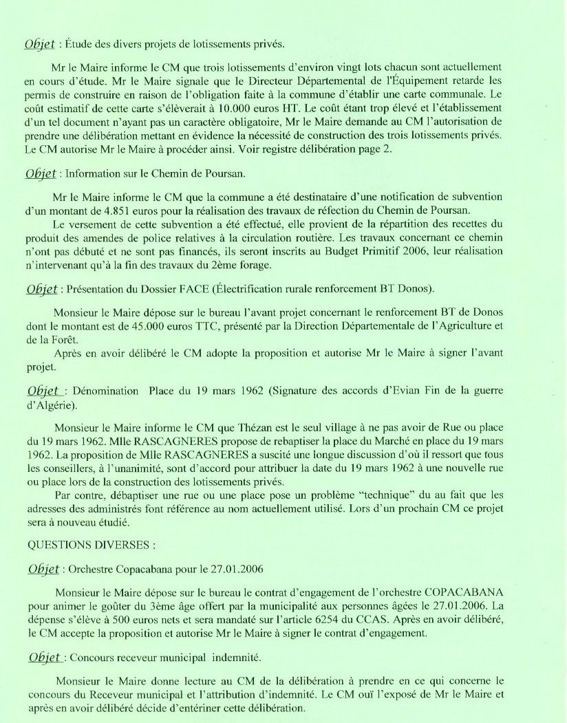 Séance du  12 Janvier 2006
