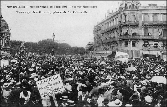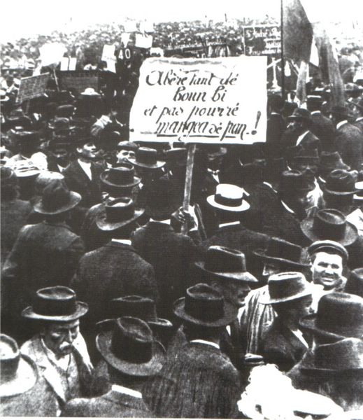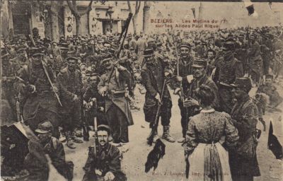 Le 17° régiment d' infanterie met crosse en l' air et se mutine au coté des vignerons |