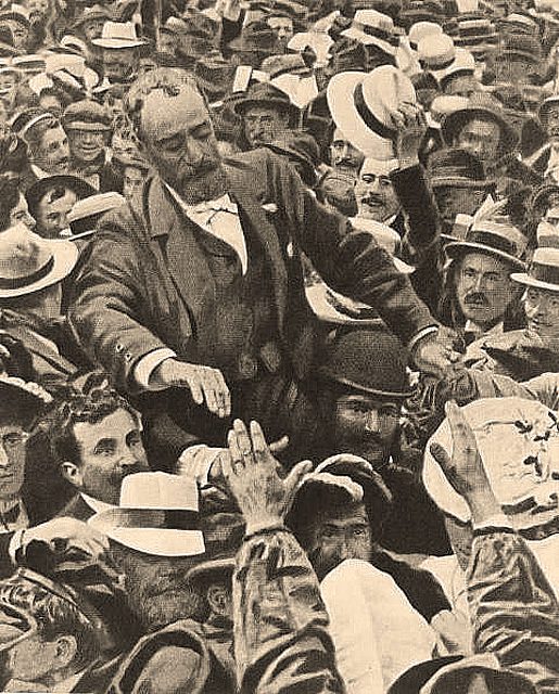 lèvent, Clemenceau remercie et recule d'un pas, matois. Il regarde