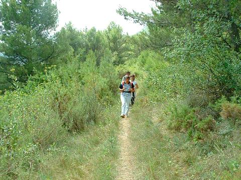 Le chemin balisé, sans grand dénivelé sur cette portion, suit à gauche la paroi rocheuse du massif en dominant à droite la vallée et le vignoble. Si vous aimé la botanique ce n'est pas ici 2 heures que durera la balade, mais au moins 2 jours. |